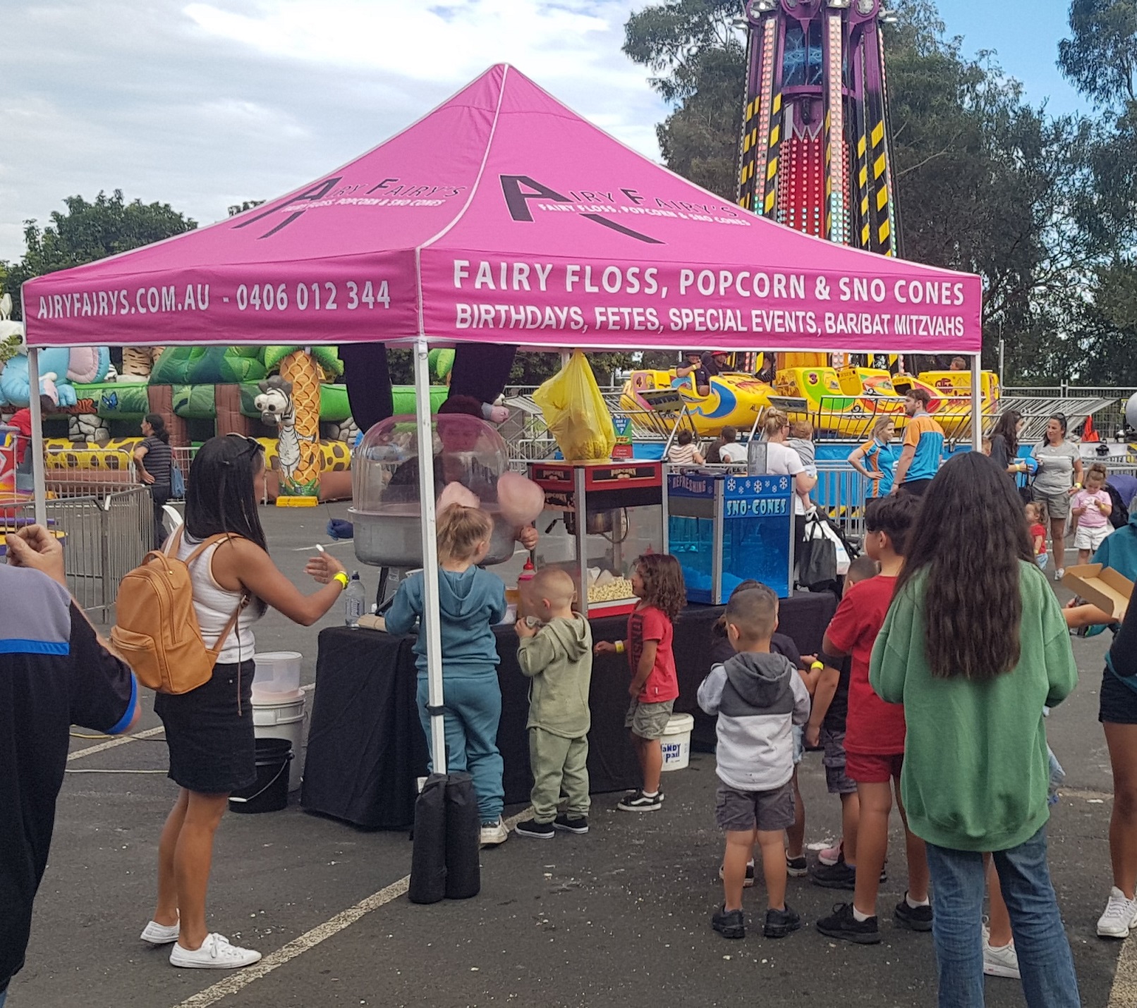 Whether you are organising a party, bar/bat mitzvah, school fete, sports event, celebration, or grand opening, we can provide Fairy Floss, Popcorn and Sno Cones for your next event!